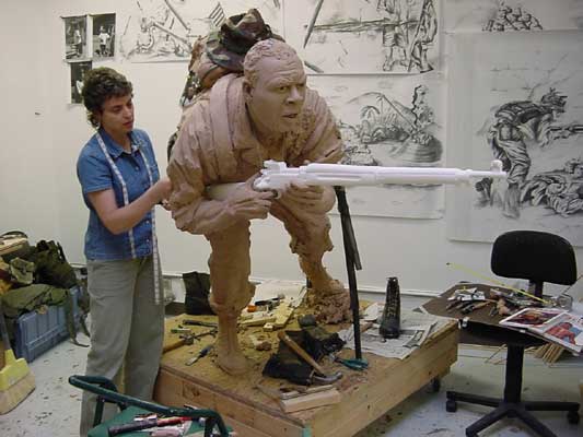 To her sculpture credit - as well as Omri's - is 'The Spirit' - the 16-foot bronze of Michael Jordan at United Center in Chicago. Also, the 10-foot bronze of Fr. John Smyth at Marybille City of Youth in Des Plaines, Illinois. For 'The Spirit,' Julie received an award of special merit for public art form the Chicago Bar Association. In 1998, she painted a 10-foot-wide painting for the Kellogg Cancer Care Unit of Evanston Hospital, and in 1999, she co-sculpted with Omri a large project for the Detroit tigers - five 8-foot tall figures in stainless steel. In 1997, she created a new bronze of St. Therese of Lisieux, Edition 9 for the Carmelite Monastery of Philadelphia. In 1999, she completed a seven-foot bronze bas relief of Our Lady of Mount Carmel for the 100-year-old Mount Carmel High School in Chicago, Edition 6.